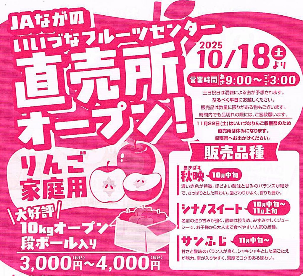 JAながの飯綱支所のふじ産地直売会も例年11月頃ですが、2021年と2020年は中止でした。